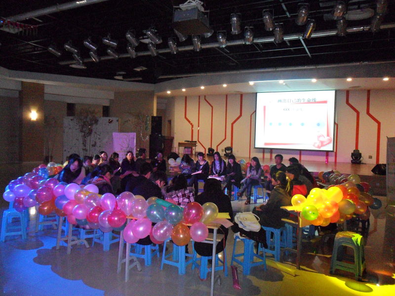 活动在院研会黄莉雅和郭静同学的主持下,先由一个名字游戏开始,大家通过自我介绍的方式与成员互相认识,接着主持人通过一段舒缓的小诗引导大家画出自己的生命线,带着我们思考过去走过的成长道路,写下自己以前生活的快乐的和不快乐的往事并与周围的同学分享。大家敞开心扉,畅谈过去,使我们进一步的了解自己的内心深处。随后的拍卖游戏更是让大家争先恐后的出手抢到自己珍藏的亲情、健康、爱情等,现场出现了一个又一个高潮。接下来,主持人引导大家回首再看生命线,同学们纷纷畅想着自己的未来,谱写着属于自己的那一份美好蓝图。游戏万花筒和真心话大冒险把现场的气氛推向了另一个高潮,同学们通过这些游戏加深了对彼此的了解。活动的最后,应邀参加沙龙的校心理协会的成员教大家学习手语歌《相亲相爱一家人》,活动在一片热烈的气氛中圆满结束。