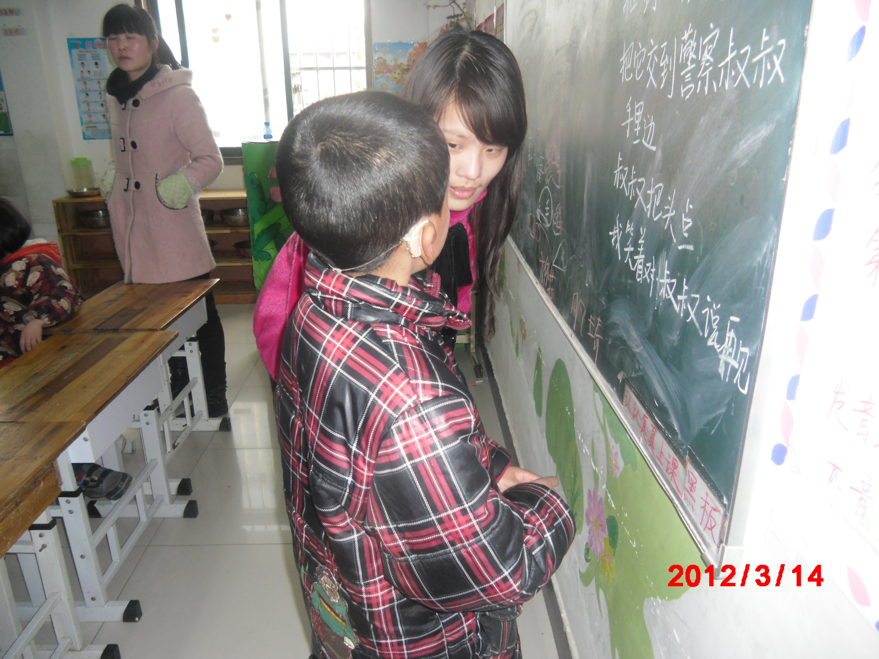 与聋哑儿童交流实属不易之事,此次活动中遇到的大部分残疾儿童原本不会写字,这就使得14C112班原定计划的实施难度加大。当然,这次活动正是对我们经管学子能力的一种考验,也从中透视出当代大学生所具有的魅力。随着日益多样化社会的形成,大学生光有优异的学习成绩是远远不够的,还需要高尚的情操和正直的品德。此次活动中,志愿者们所表现出来的对残疾儿童的关爱、与残疾儿童沟通的智慧以及在与残疾儿童相处时的耐心细心,凸显了新一代大学生优秀的学识能力和道德素养,是弘扬雷锋精神活动中温馨的一站。