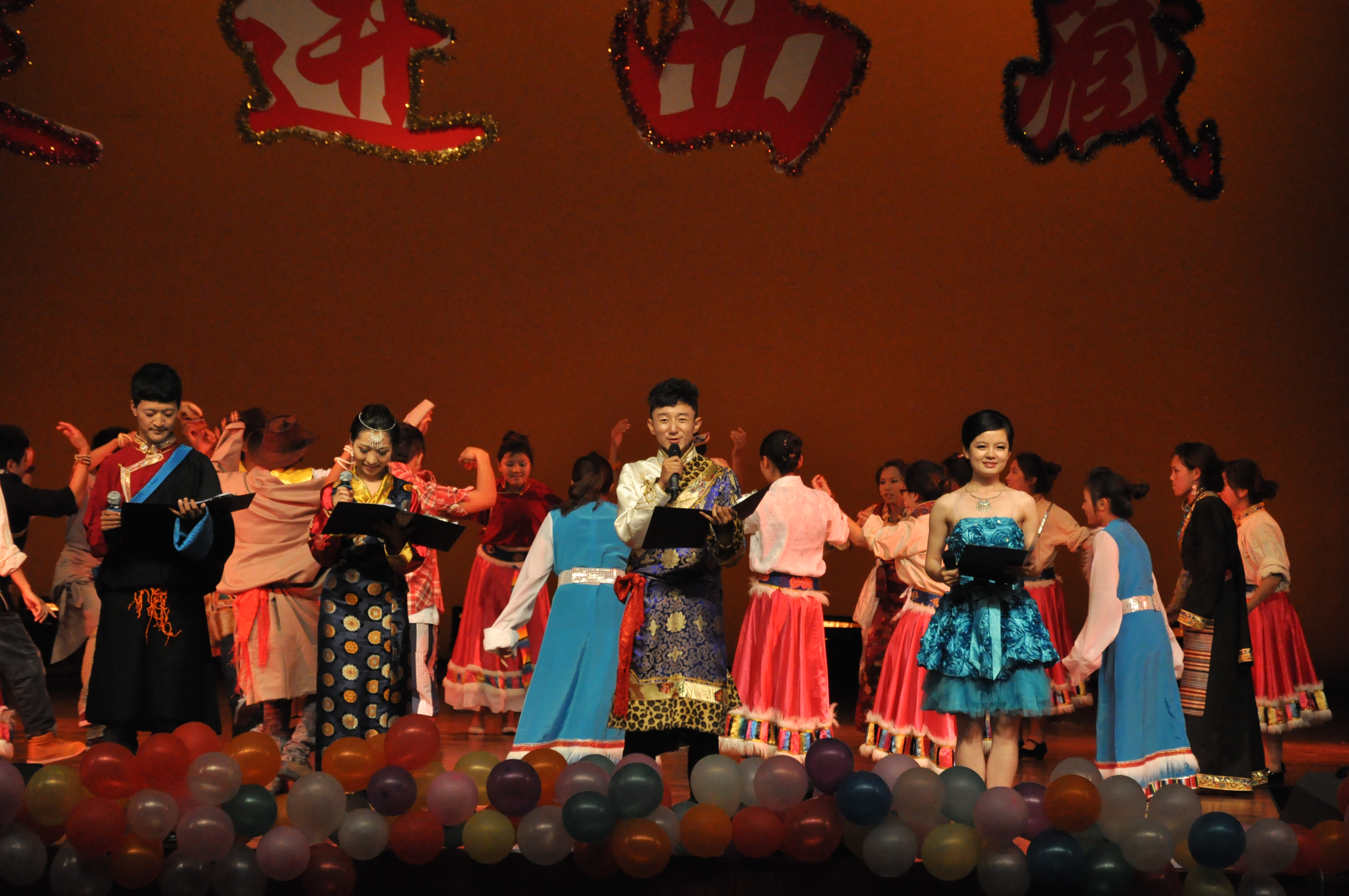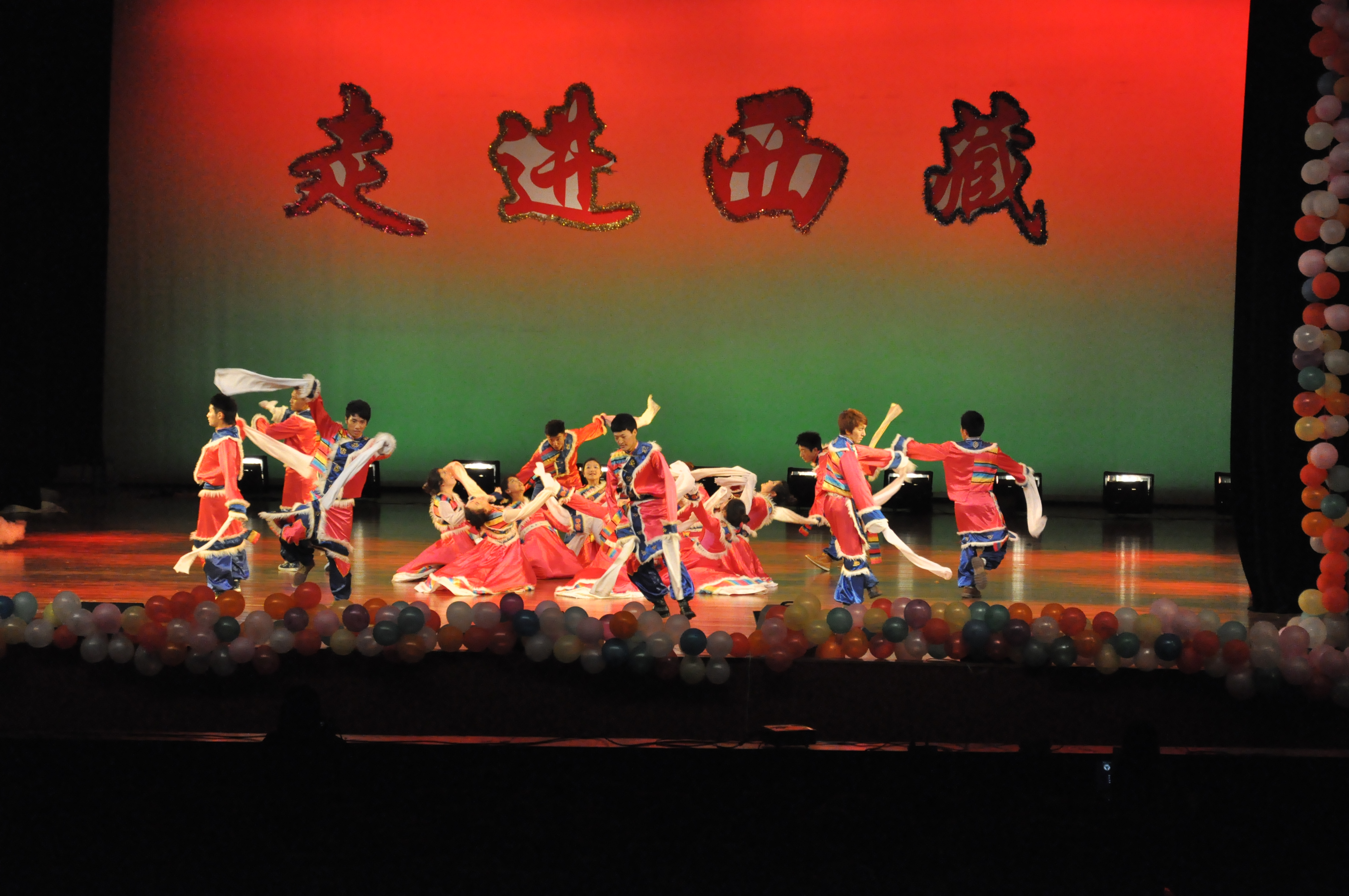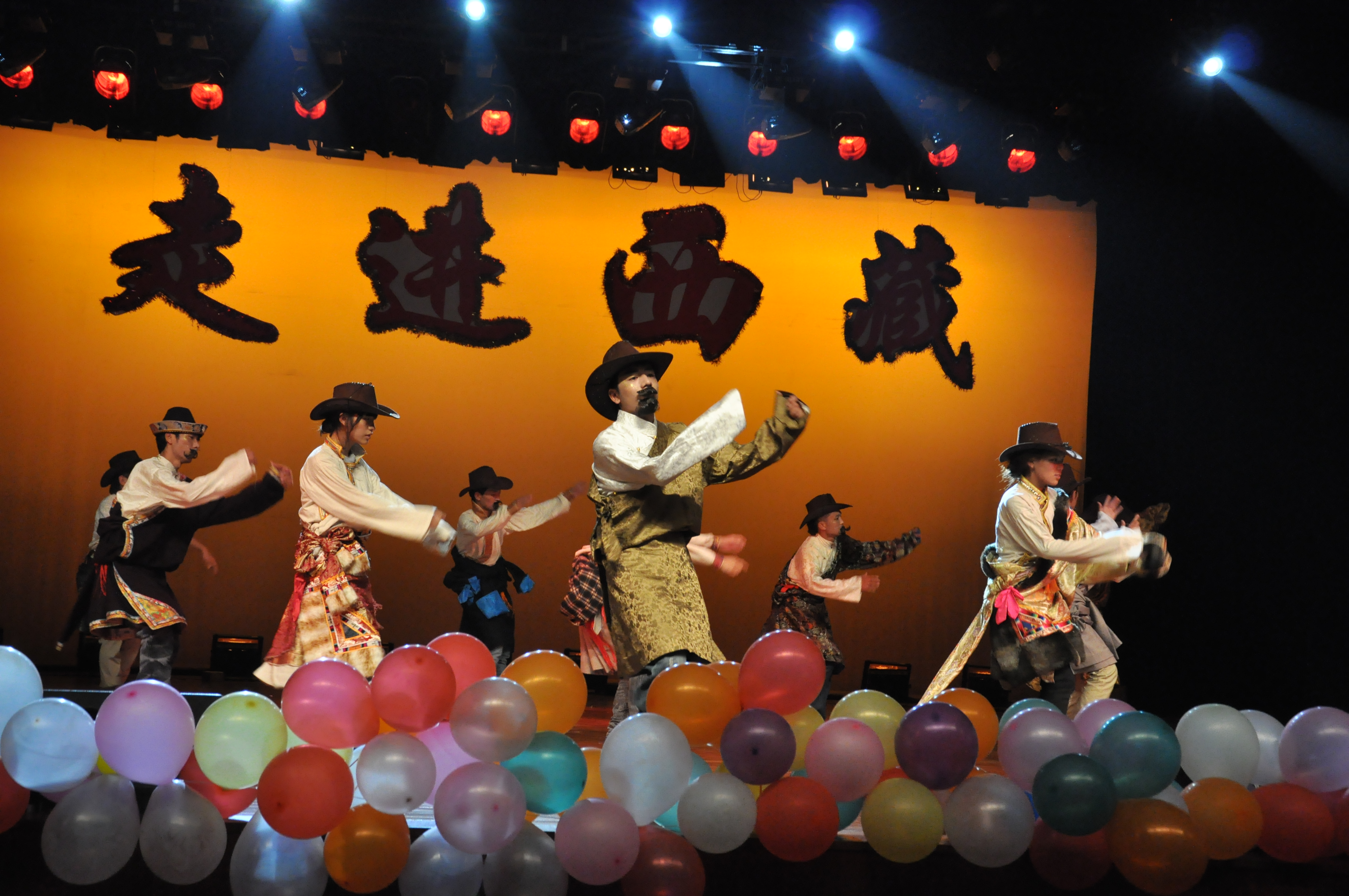 晚会开场即以舞蹈《情满草原》,让我们感受到藏北草原上的藏族青年男女之间浪漫、纯真的爱情故事。舞蹈《卓舞的风采》把我们带到那盛开着美丽的鲜花和圣洁雪莲花的草原。舞蹈《沉甸甸》以一段既有女扮男装、又有男生扮老人的幽默而搞笑的娱乐性舞蹈以及沉甸甸的挂饰及夸张的动作、表情,反映了新西藏在党的领导下一片富裕、和谐、幸福的景象。藏民族服饰秀以及藏民族服饰体验又把我们带到了多姿多彩、独具特色的藏族穿着文化中,仿佛置身在那片古老而神秘的土地上。闭幕晚会上精彩的文艺表演、藏族同学们的豪情点燃了现场所有师生的激情,使广大师生尽情释放自己,释放激情,与藏族同学一起欢歌悦舞!
