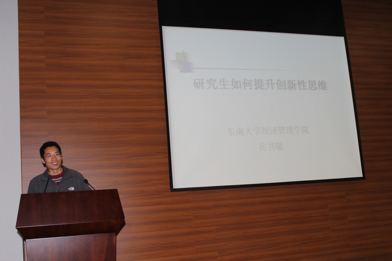2012年10月22日bat365在线中国官网登录入口举办的第一场研究生人文与科学素养讲座获得圆满成功。本次讲座邀请东大经管学院岳书敬老师和秦双全老师为2012级研究生新生就研究生如何进行创新性思考与漫谈文科科研论文作出精彩演讲,在场同学对创新与学术论文创作有了新的思考与见地,在现场积极提问,反响热烈。