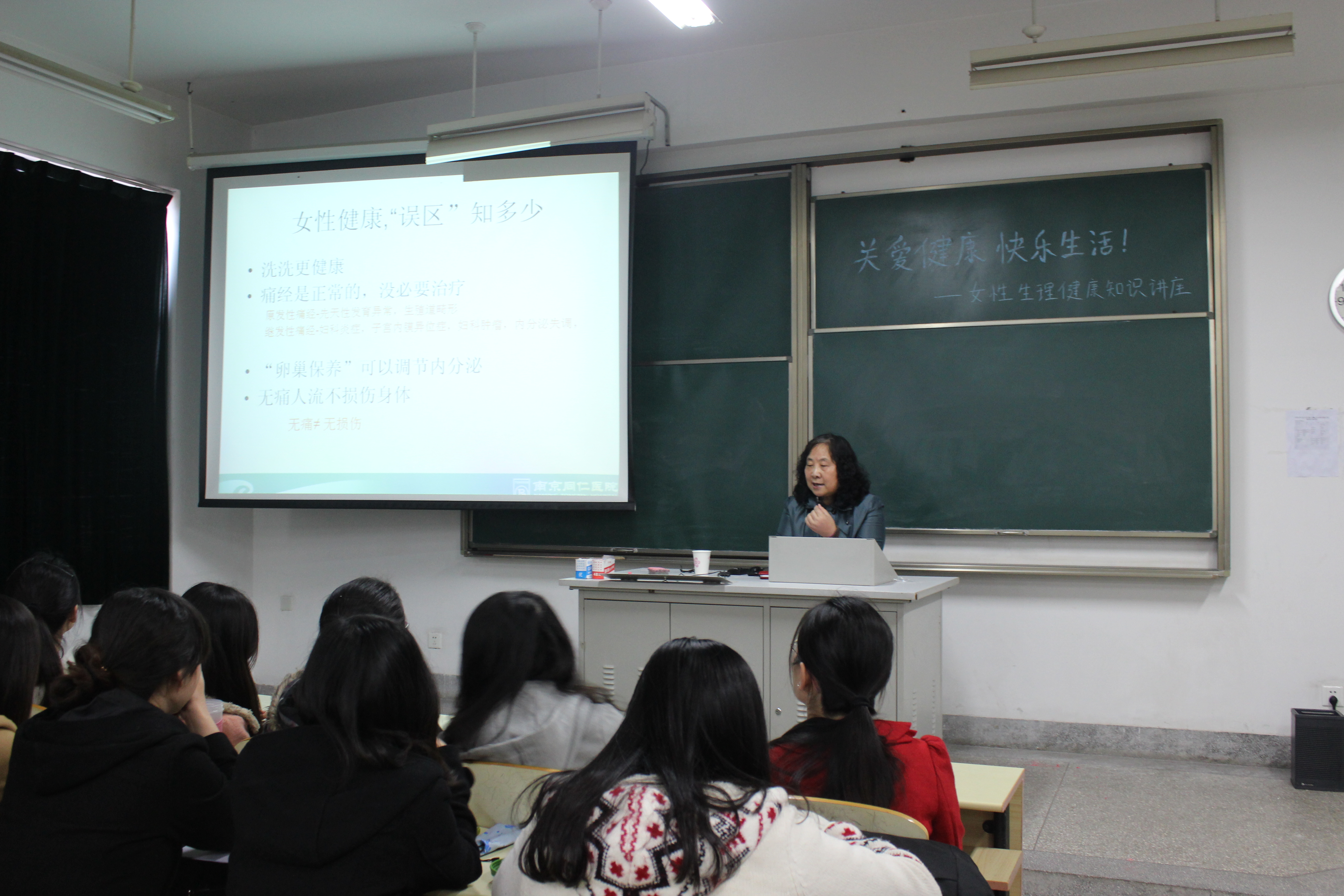 讲座期间,马利教授用轻松幽默的话语营造了一个愉悦的氛围。她先是让同学们直观深入对女性独特生理结构进行全方位的了解。紧接着提出了平时我们对女性生理健康的一些盲点和误区。然后根据自己十几年来的工作经验,给我们阐述了重视女性自身的生理健康的重要性。最后,给我们大家提出了如何做好女性保健的建议。