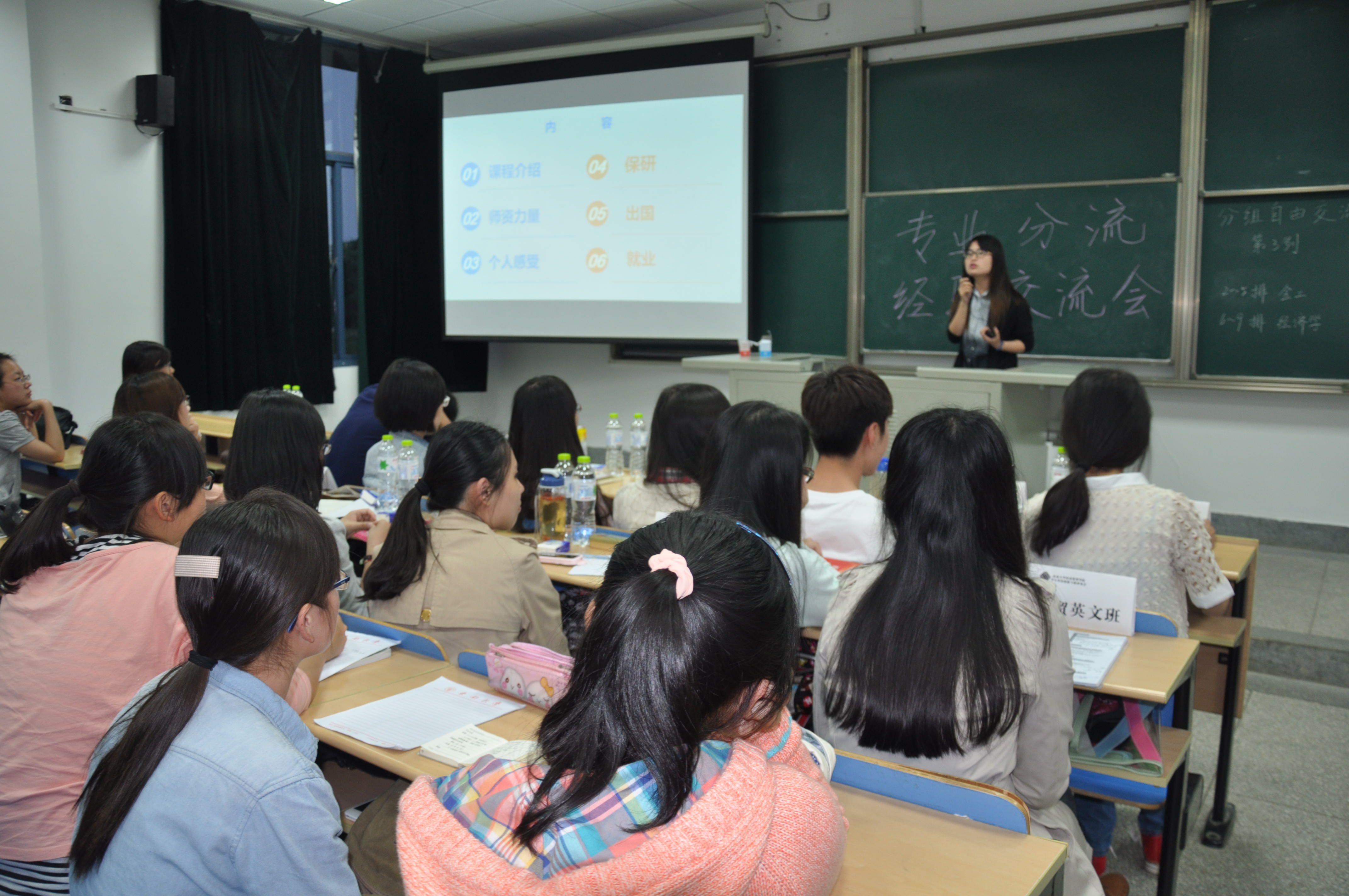 各位学长学姐们在会上分享了精心准备的内容,对各自专业的课程设置,考研、就业及出国情况作了详细的介绍,并且分享了各自选专业时及选择后的心得体会,让同学们加深了对各专业的了解,也让同学们对于专业选择多了一份启示。