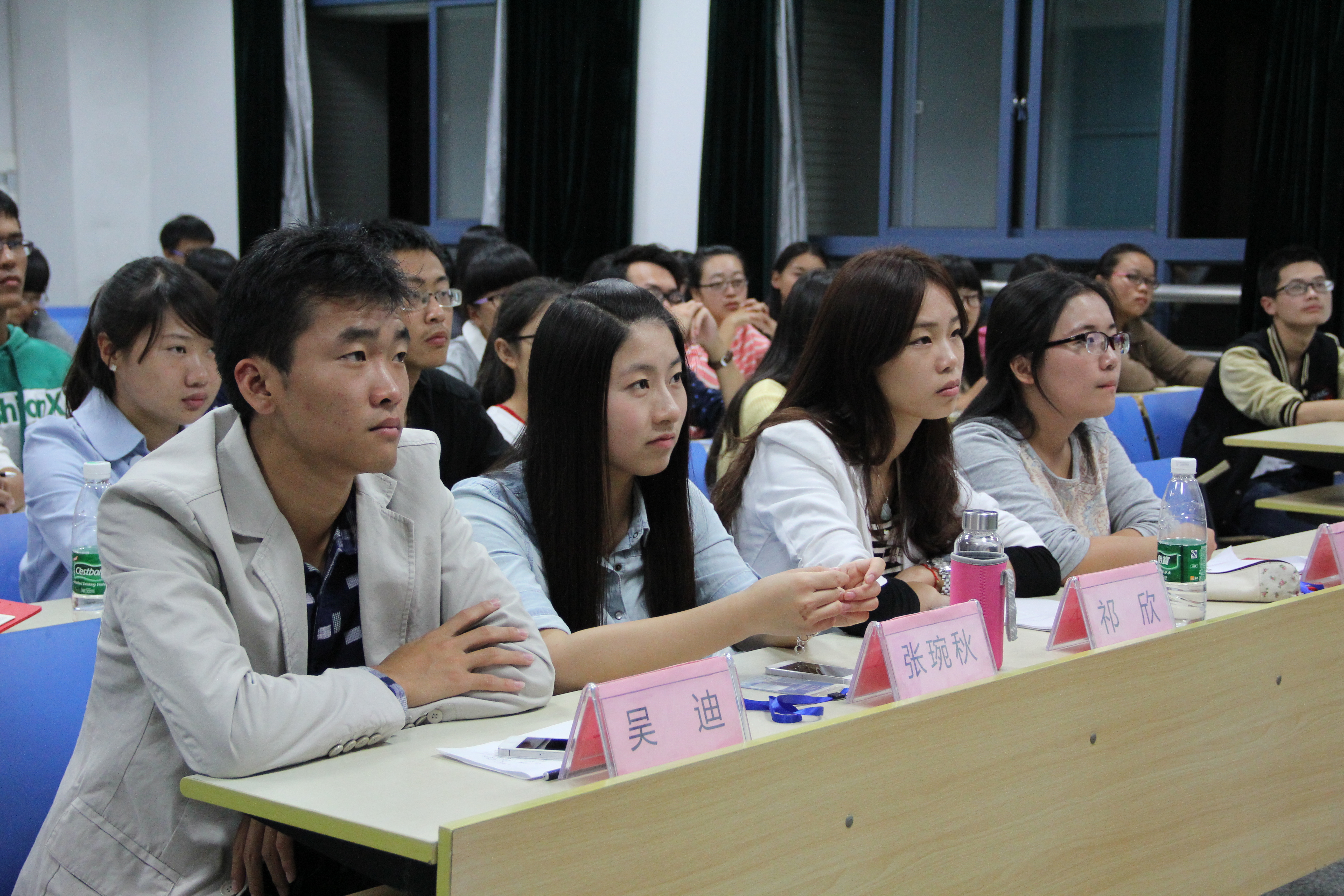 首先,指导老师祝逸超的发言拉开了会议的序幕。会长祁欣欢迎新成员的加入,并介绍了科协的现状,让大家了解到科协虽然年轻但并不等于不成功,未来的定位需要一段实践的历程。副会长吴迪强调做事需要责任心 ,张婉秋介绍了科协成立以来的活动,普韵进行了对科协制度的讲解。接着,各部门部长依次介绍了各自职能以及未来工作安排的情况。其中,多米诺骨牌大赛、走进名企系列活动、专业分流会、光大新型比赛、职场礼仪培训等栏目展现了科协的风采,深深地引起了大家的关注。