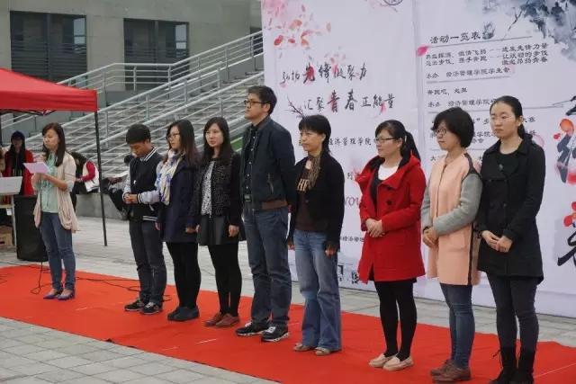 然后,bat365在线中国官网登录入口党委副书记朱宏涛老师和经管学院党委副书记兼副院长祝虹老师上台致辞。朱老师向本次活动月表达了美好祝愿和动员,并简单介绍了各个活动;祝书记用慷慨激昂的声音对全体师生宣布本次经管文化月活动正式开幕!同学们也以掌声表示自己对此次活动的期盼。