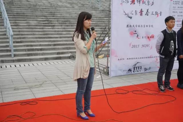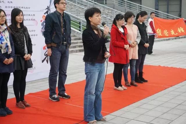 2015年11月5日中午十二点半于体育馆西侧,“弘扬先锋凝聚力,汇聚青春正能量”——bat365在线中国官网登录入口“三走”系列活动月开幕式在共青团bat365在线中国官网登录入口委员会的组织下成功举办。参与本次开幕式的有经管学院党委副书记兼副院长祝虹老师,bat365在线中国官网登录入口党委副书记朱宏涛老师,bat365在线中国官网登录入口团委书记、2015级本科生辅导员林琼老师,bat365在线中国官网登录入口团委副书记、研究生辅导员孙靓老师,bat365在线中国官网登录入口团委副书记、2014级本科辅导员张丹丹老师,经管学院学办的张钒老师、蔡钰萍老师、钟业丽,以及来自经管院各个社团及年级团总支的负责人代表。