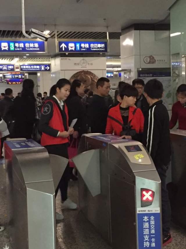 11:45左右,众人到达地铁站。志愿者分成两批进行了志愿服务。3月的南京风景宜人,南京南地铁站内游人如织,问路的人也比往常多了许多。而我们的志愿者仍是一如既往的耐心与认真,面对一个个问路的游客,他们手拿小册子详细认真的作着回答。站在地铁站内,看着来往的人群,有的是一家三口出游赏花,有的是小情侣亲密出行,有的是同学闺蜜聚会说笑,这一幕幕温馨的场景让身为志愿者的我们不禁露出会心的微笑。每当地铁到站时,一波波游客“汹涌而出”,这也就是问路的高峰期,偶尔会有两三个人一同在问路的情况发生,但我们的志愿者丝毫不见慌乱由简到难,游刃有余的将游客的问题一一化解,是每一个游客的问题都能得到解答,看到问路的游客脸上露出感激的微笑,他们的内心也是快乐与满足的。在游客一句句“谢谢”之中,志愿者们体会到了进行志愿活动的最大意义——用自己的点滴行为,温暖他人。