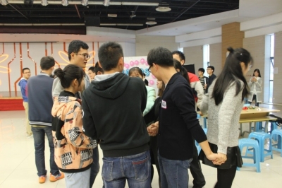 第二部分为游戏环节,同学们在三个不同的游戏中沟通交流,协调合作,相互了解,相互熟识,将活动氛围推向高潮。
