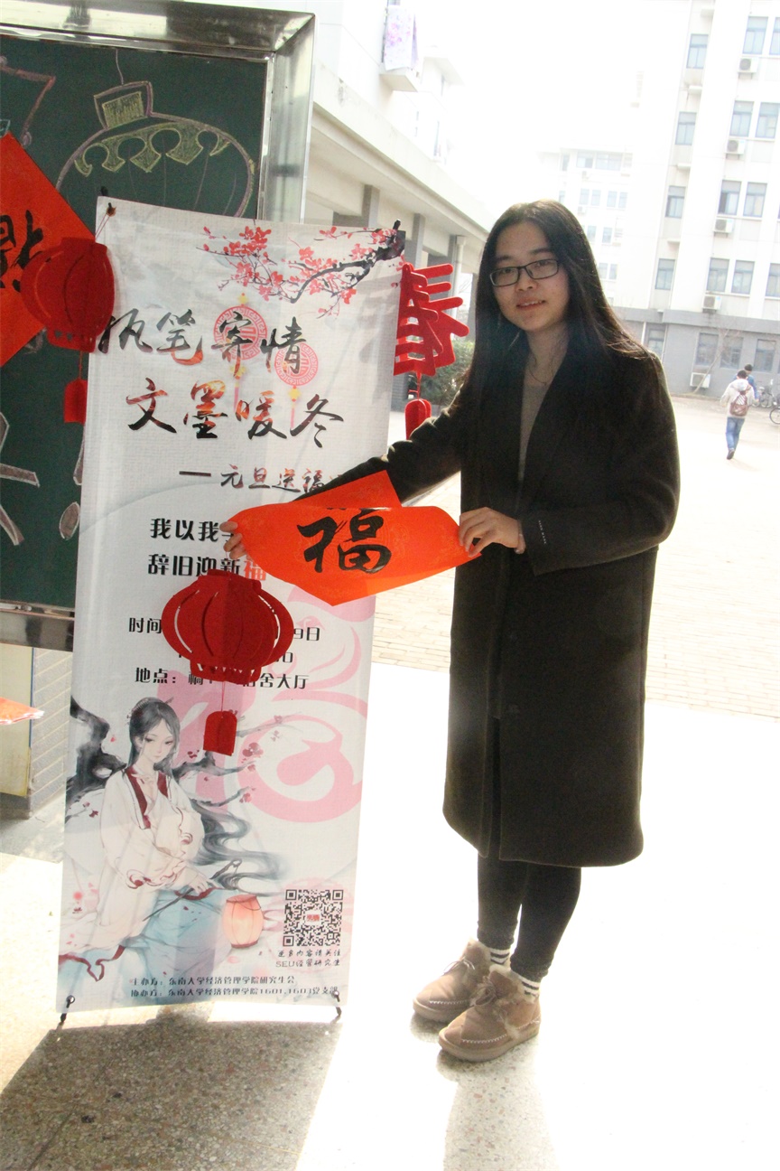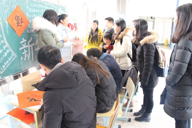 2016年12月29日,bat365在线中国官网登录入口研究生会和1601、1603党支部合作,借新春之际,趁着阳光明媚,在橘1-4大厅举办了“执笔寄情,文墨暖冬”元旦送福活动,得到了同学们的大力支持和热烈响应。