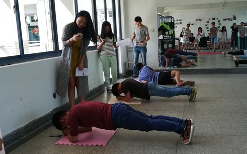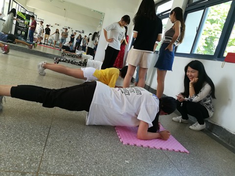 这次平板支撑比赛中,男子组罗一鸣同学以7分钟取得男子组的第一名,第二名成绩为6分21秒。女子组陶桅同学以4分31秒,第二名成绩为4分钟。大多数男同学成绩在6分钟左右,女同学成绩一般在3分钟左右。在这短短几分钟,对于有的人来说漫长难熬,对于其他人来说轻而易举。但是,滴下的汗水带来的回报不仅是优美的背部曲线,更是耐力的提高。