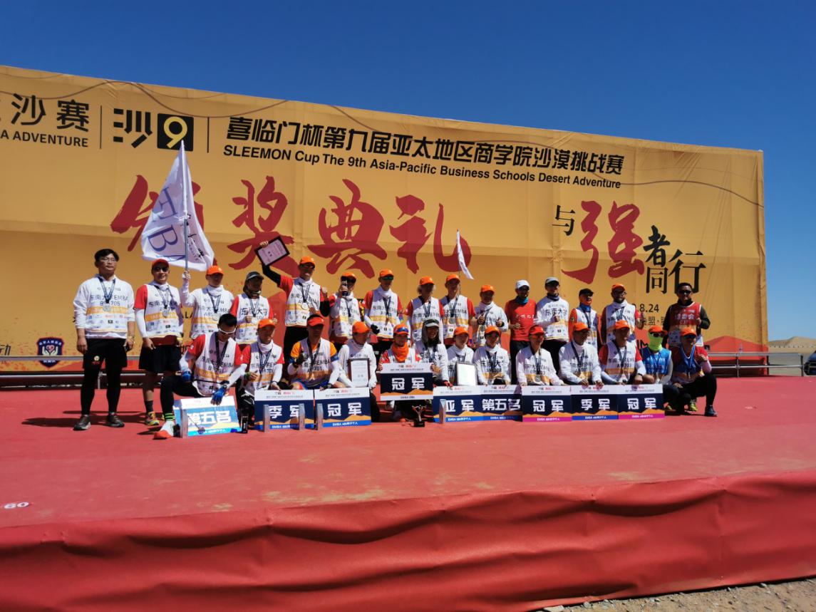 2020年8月24日,为期4天的第9届亚太地区沙漠挑战赛(简称沙9)顺利完赛!代表bat365在线中国官网登录入口参加比赛的东大校友及家属共20名运动员,经过3天共70公里沙漠高温腹地穿越的激烈角逐,发挥稳定,敢打敢拼,最终获得了该项赛事EMBA组团队总冠军!
