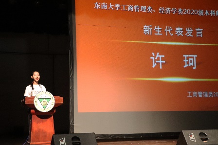 师生见面会上有老师的热切关怀自然也少不了学生们的意气风发,20级新生许珂同学与19级学长康晟毓同学分别代表新生与在校生发言,展现了新生们以梦想为帆,以拼搏为桨的青春活力,也传递了东大经管人的理念,引导大家初探经管先锋的风采。