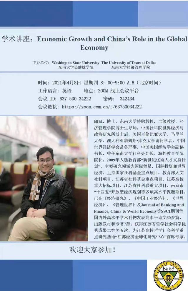 学术前沿讲座— Economic Growth and China's Role in the Global Economy