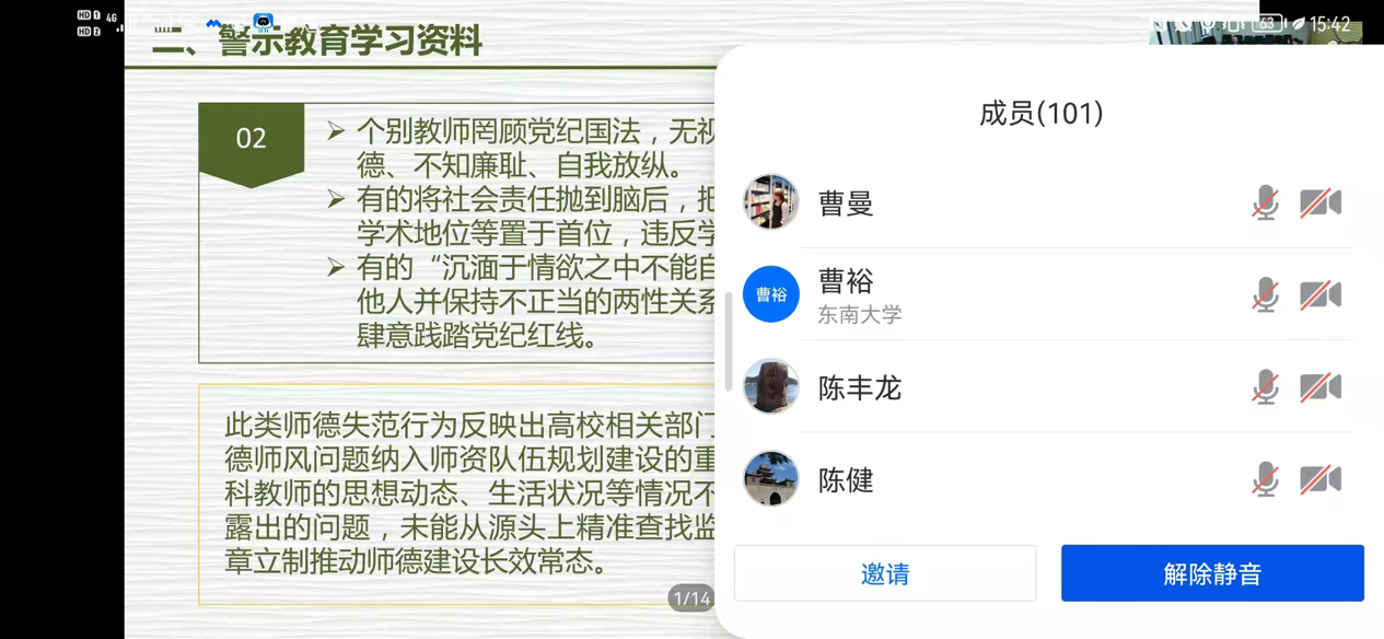 全体教师深刻意识到,要始终坚守高校教师应该具有的理想信念,不断提升教师职业道德,严格自律,持续深入组织和参与学习师德师风专题警示教育活动,对于其中的典型案例,要引以为戒。