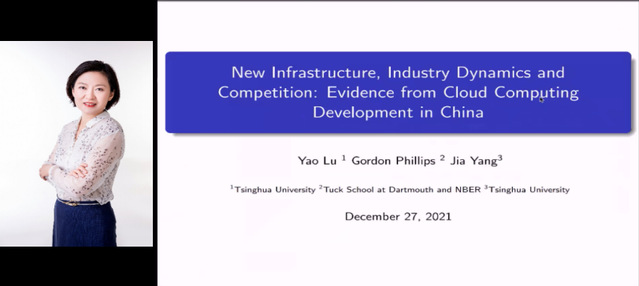 清华大学经管学院金融系副系主任陆瑶教授以“New Infrastructure, Industry Dynamics and Competition: Evidence from Cloud Computing Development in China”为主题,评估了云计算新基建基础设施对我国行业动态和竞争的影响。