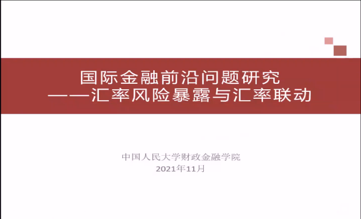 中国人民大学财政金融学院何青教授以“Exchange rate co-movements and corporate foreign exchange exposures: a study on RMB”为主题,从公司层面的视角分享了我国双边汇率制度间时序波动特征。![]()