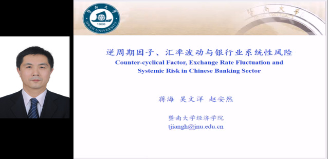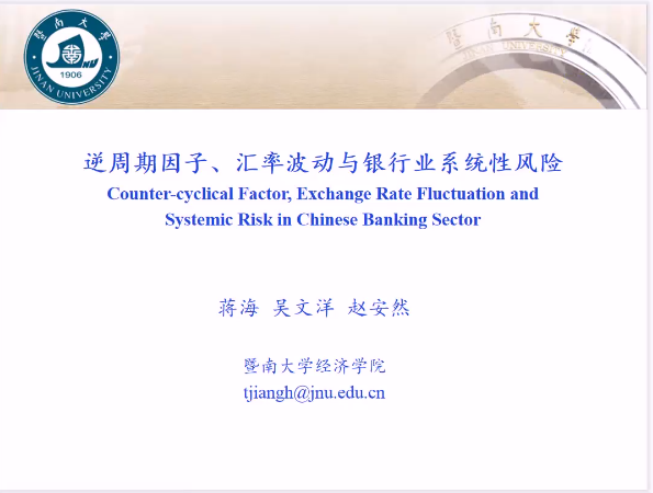 暨南大学经济学院副院长蒋海教授以“逆周期因子、汇率波动与银行业系统性风险”为主题进行了主旨演讲,发现逆周期因子在短期内可以显著降低汇率波动幅度,从而稳定汇率,进而降低银行业系统性风险,但是,中长期效果不如短期明显。![]()