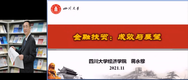 四川大学经济学院院长蒋永穆教授以“金融扶贫”为主题,分享了金融扶贫的重要意义、金融扶贫的基本做法、后扶贫时代的金融扶贫等研究成果。