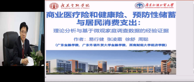 广东金融学院副校长易行健教授进行了“商业医疗险和健康险、预防性储蓄与居民消费支出:理论分析与基于微观家庭调查数据的经验证据”的主题报告,研究发现家庭商业医疗险和健康险保费支出会显著降低家庭储蓄率并促进家庭消费支出,且对不同类别消费支出的影响存在明显差异。