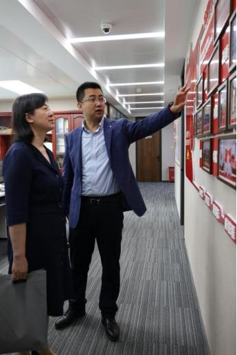 最后,在江苏分公司总经理解思源的陪同下,袁健红书记一行参观了公司办公区及荣誉墙,对中信证券的发展背景、愿景使命及江苏分公司的区域发展特色作进一步了解。