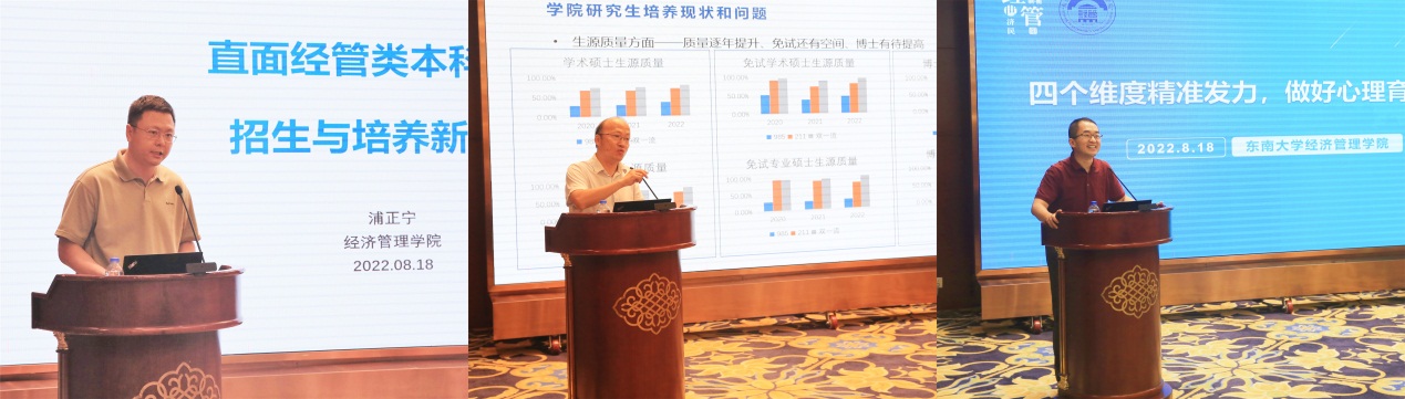 浦正宁副院长汇报了本科生工作相关情况,结合经管类本科专业招生与培养情况,从学院本科学生的数量变化、专业学生倾向的变化、2022级本科生招生情况和培养中的学生认可度等方面指出了本科专业招生与培养面临的新挑战,并提出了相应的思考和建议。