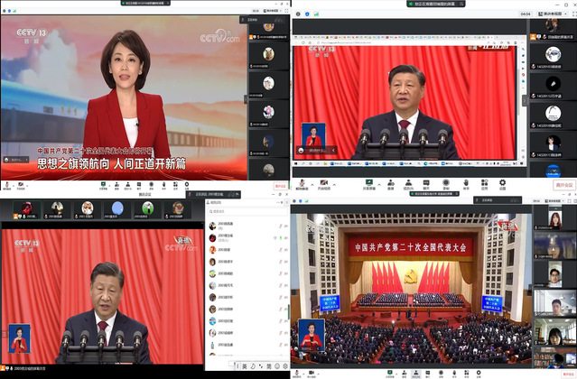此外,为全面学习宣传和贯彻落实党的二十大精神,根据校党委的统一安排部署,bat365官网组织全体本硕博党支部、团支部以线上线下相结合的方式认真收听收看了开幕会现场直播。