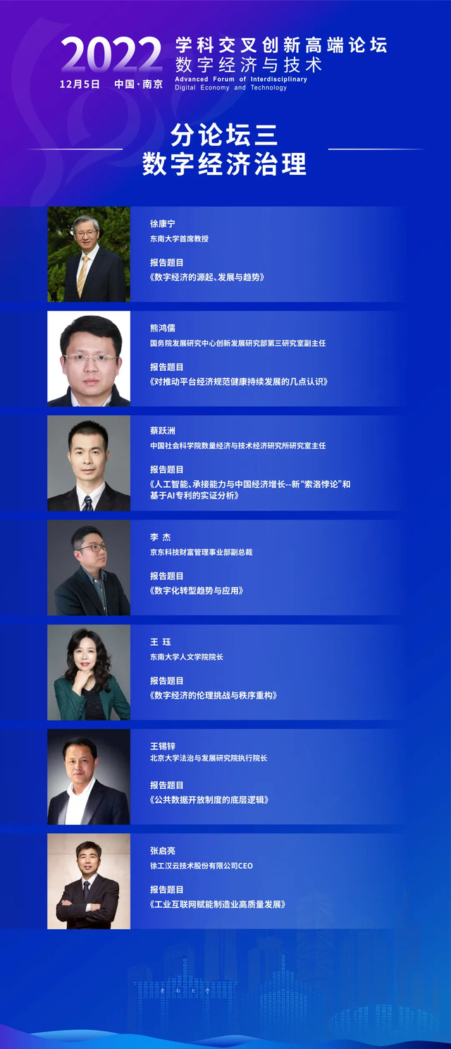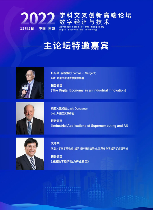 就在2022年12月5日举行的学科交叉创新高端论坛:数字经济与技术,Thomas J. Sargent、Jack Dongarra、南京大学经济增长研究院院长、江苏省数字经济学会理事长沈坤荣教授以及国内外著名学者,共研数字技术解决方案,共建学科交叉创新平台。