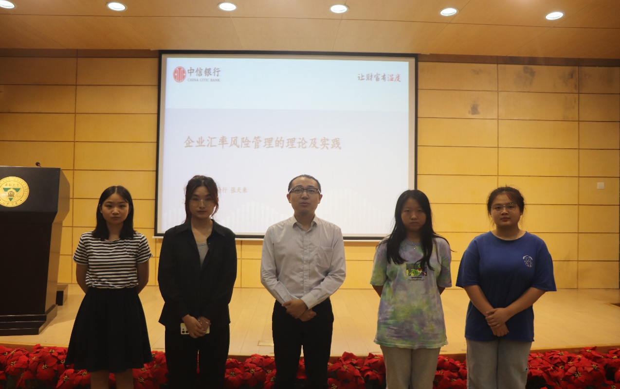 在互动交流环节,张天来先生和对外汇感兴趣的同学进行面对面亲切交流,他深刻独到的见解令同学们受益匪浅。最后,嘉宾和工作人员进行现场合影。
