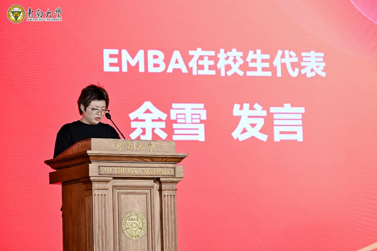 MBA在校生代表赵恒星同学介绍了丰富多彩的MBA学习生活,她通过参加案例赛、亚沙赛以及国演赛等赛事的经历,分享了在bat365在线中国官网登录入口学习生活中获得专业管理知识的提升、思维模式的改变等方面的收获。EMBA在校生代表余雪同学从收获颇丰的企业实践谈起,启发学弟学妹们不仅要注重课堂学习,更要学会融会贯通,从实践中汲取成长的养分。