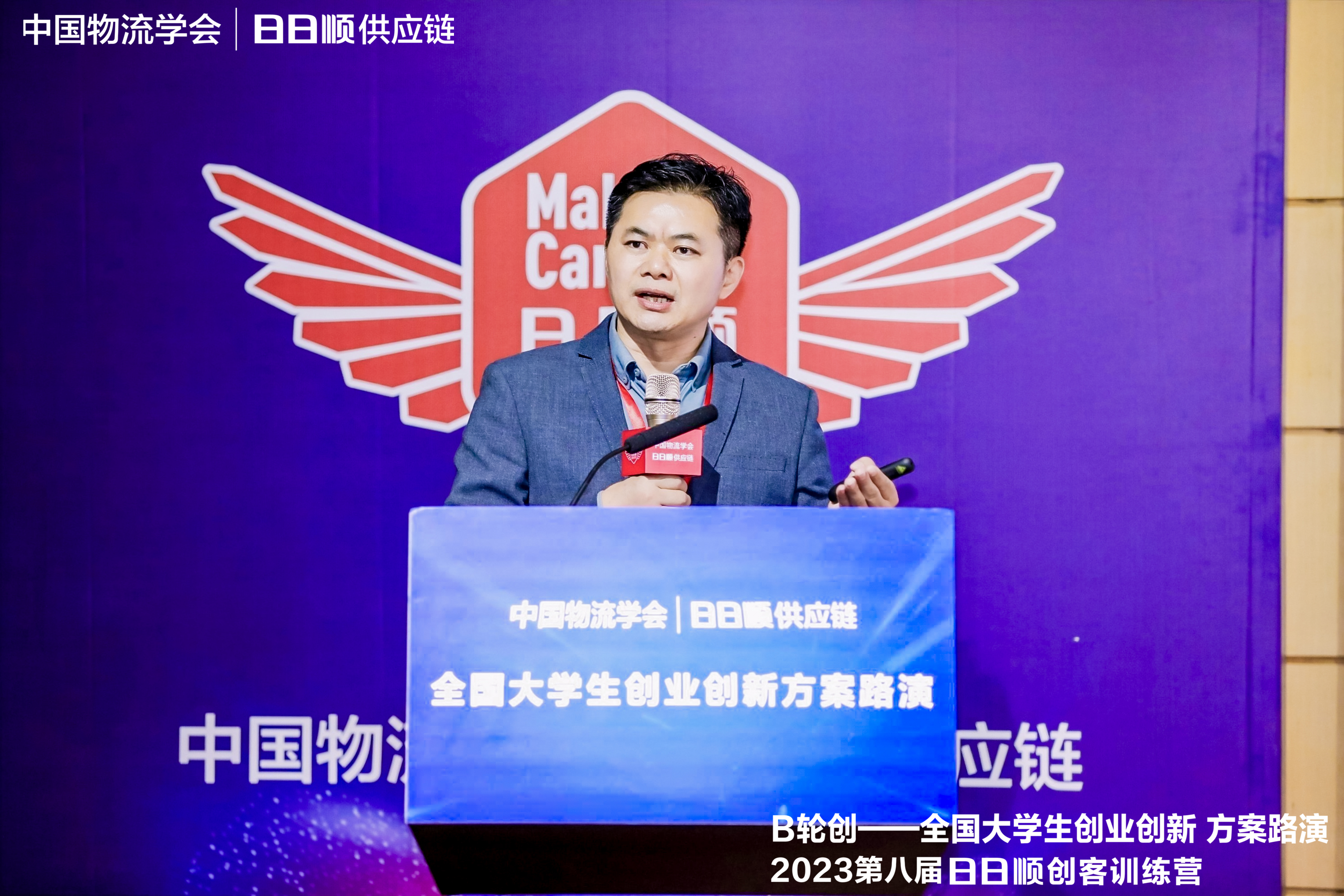 中国物流与采购联合会副会长、中国物流学会秘书长贺登才在启动会上表达了对“B轮创”协办方bat365在线中国官网登录入口以及到场各位嘉宾的感谢,同时他肯定了同学们努力拼搏的创客精神,并针对物流行业发展趋势进行了分享。在谈及创新人才培养时,他表示,“日日顺创客训练营是培养创业创新人才的大舞台,中国的青年学子们需要抓住机会不懈努力,一起实现‘物流强国’的伟大目标。”