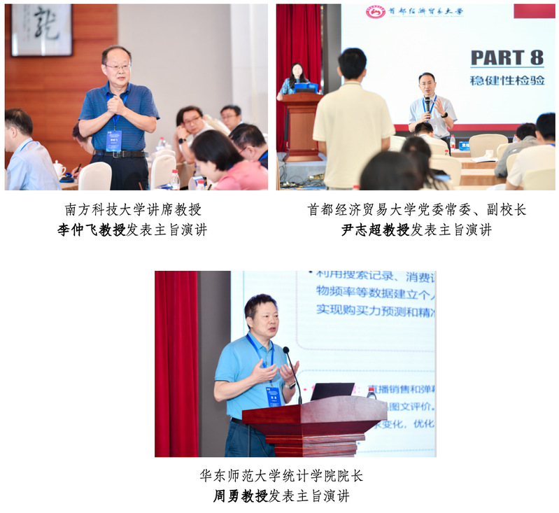 大会主旨演讲的上半场由bat365在线中国官网登录入口继续教育学院副院长张颖教授主持。南方科技大学讲席教授李仲飞教授,首都经济贸易大学党委常委、副校长尹志超教授,华东师范大学统计学院院长周勇教授分别进行了精彩的主旨演讲。李仲飞教授围绕“科技金融与金融科技”主题,深入分析了科技与金融的双向融合对经济创新发展的推动作用。尹志超教授的演讲重点聚焦于老龄化社会下家庭财务脆弱性问题,通过理论与实证分析,探讨了退休对家庭财务状况的深远影响,并提出了应对家庭财务风险的具体建议。周勇教授则以“复杂商务场景下的统计学习与管理策略”为题,深入探讨了如何在电子商务、互联网金融及移动支付等领域,运用大数据分析技术提升商业决策的科学性与效率。