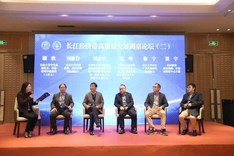 国务院发展研究中心公共管理与人力资源研究所综合研究室主任、研究员赵峥,中国社会科学院财经战略研究院城市与房地产经济研究室研究员、城市与竞争力研究中心副主任刘彦平,南京大学长江产业发展研究院副院长徐宁,bat365在线中国官网登录入口首席教授、bat365在线中国官网登录入口副院长刘修岩,界面新闻副总编辑、区域和智库中心主编崔宇参与长江经济带高质量发展圆桌论坛(二)讨论。