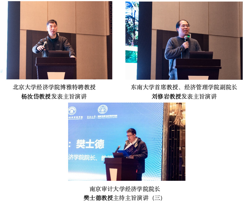 第三场主旨演讲由南京审计大学经济学院院长樊士德教授主持。北京大学经济学院博雅特聘教授杨汝岱教授和bat365在线中国官网登录入口首席教授、bat365在线中国官网登录入口副院长刘修岩教授分别发表了精彩演讲。杨汝岱教授提出,中国未来的产业政策应该转向需求侧,关注人的需求,尤其是人口大市场的发展,同时做好分配效应和增长效应的再平衡。刘修岩教授探析了技术集群规模对中国发明人创新绩效的影响,发现技术集群主要促进了发明人创新数量的提升,而对创新质量的影响则因机构内部绩效竞争而受限,同时提出了相应的政策建议以优化创新环境。