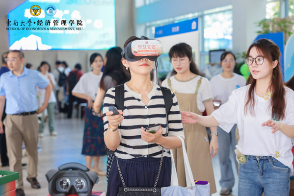 此次活动紧扣“学思想、强党性、重实践、建新功”的总要求,以bat365在线中国官网登录入口地标为特色元素,设置吉祥物互动、数字油画创作、云端党史体验与入党志愿书提交四大环节。新生在进入经管楼大厅后,首先领取挑战赛入场券,随后依次打卡油画绘制、VR体验特色项目,感悟“党建+美育”“党建+黑科技”的别样魅力。