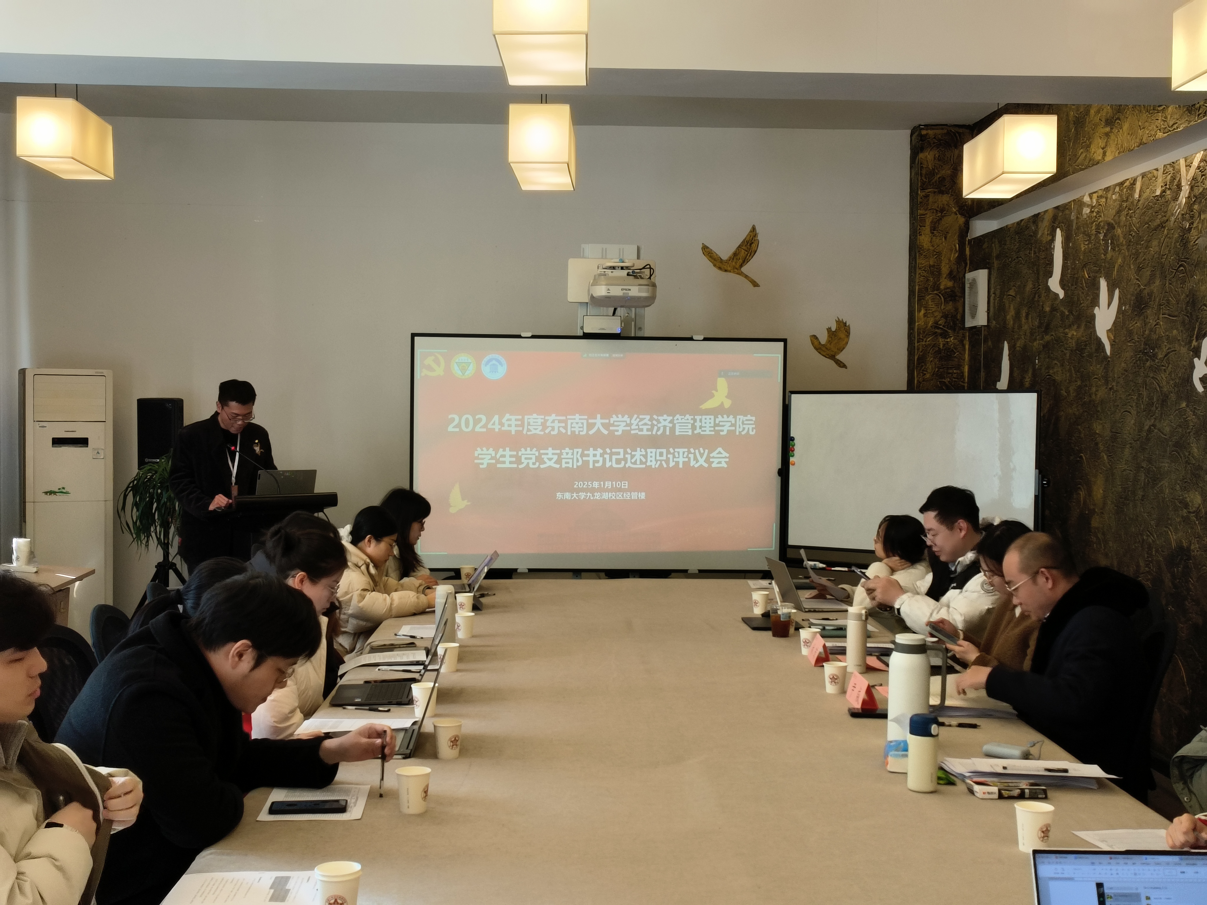 1月3日与10日,bat365在线中国官网登录入口2024年度全院党支部书记述职会议在bat365在线中国官网登录入口九龙湖校区经管楼顺利举行。学院党委书记袁健红、党委副书记兼副院长尹威、党委秘书林琼,以及全体教工、学生党支部书记出席会议。会议由先锋党建工作站站长严格和组织部许宇轩主持。