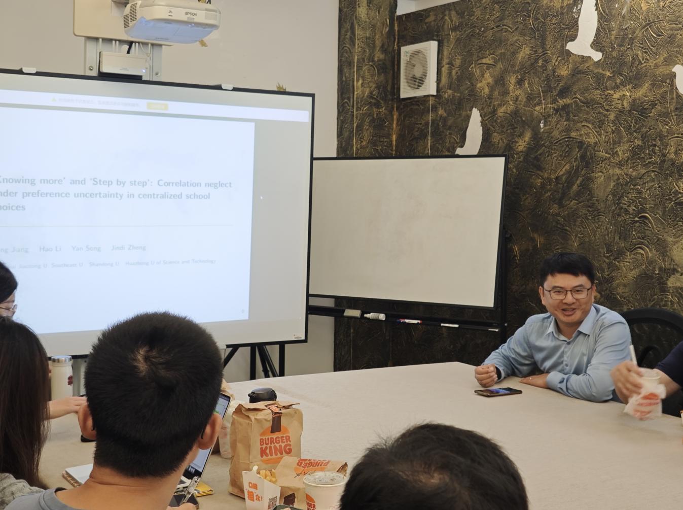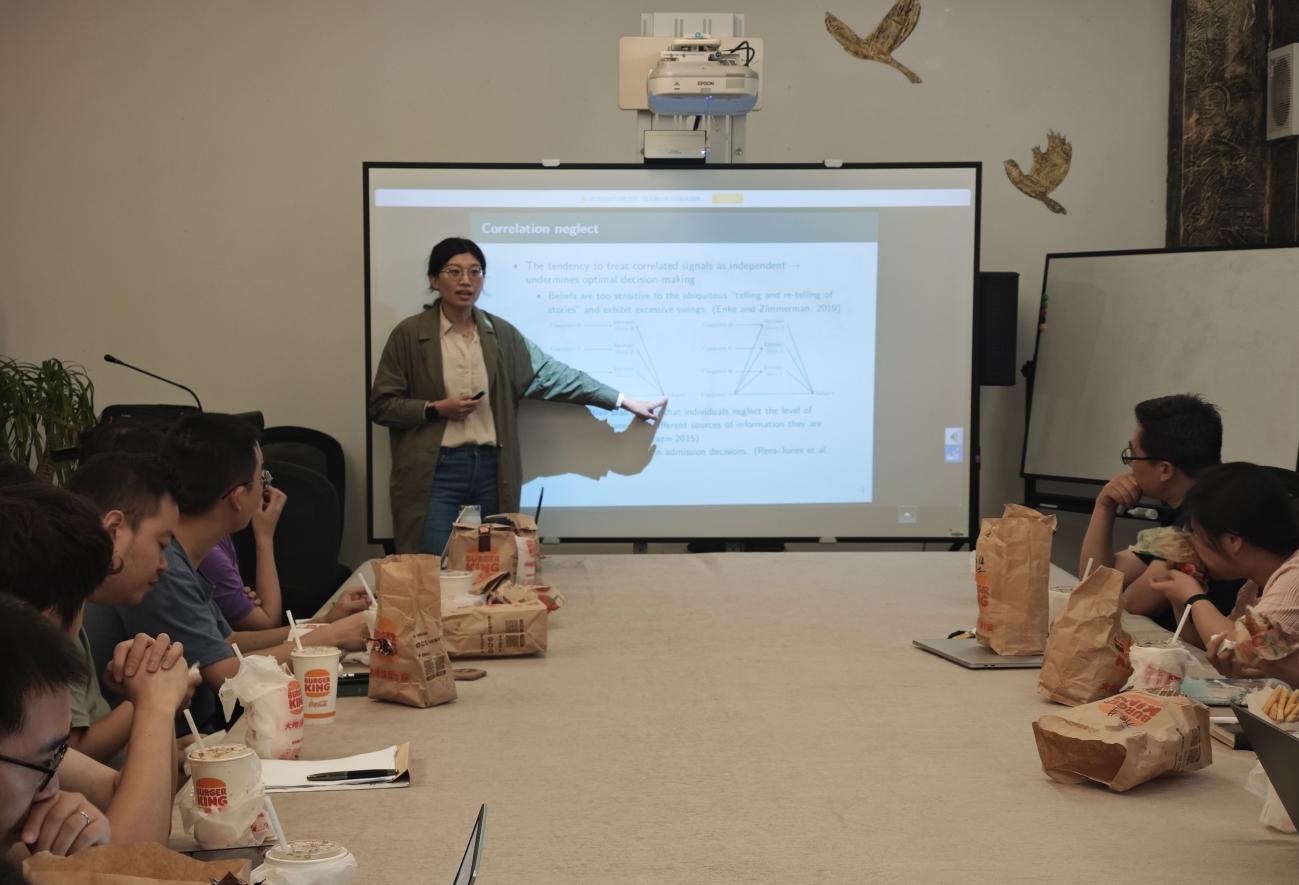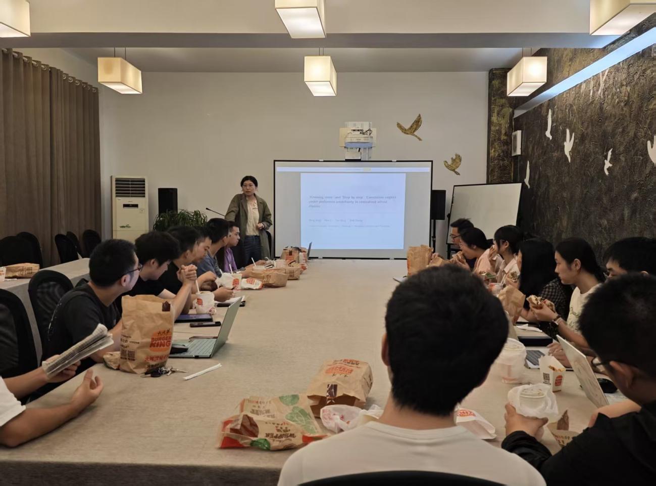 2025年9月24日,bat365在线中国官网登录入口第八期学术午餐会在经管楼B203成功举行。本次活动由bat365在线中国官网登录入口副院长丁溢主持,特邀李昊老师主讲,吸引了20位师生参与,众多师生齐聚一堂,在轻松平等的午餐交流氛围中,共同探讨经济学前沿问题。