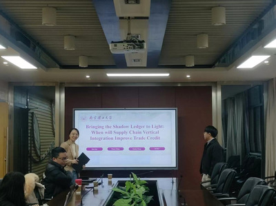 在当前企业战略与公司金融研究不断深化的背景下,为增进学院师生对供应链管理及其经济影响的理解,拓展公司财务与治理的研究视野,学院于2025年12月31号上午,特邀南京理工大学bat365在线中国官网登录入口讲师孙乾,举办了主题为《Bringing the Shadow Ledger to Light: When will Supply Chain Vertical Integration Improve Trade Credit》的学术讲座。讲座聚焦企业垂直整合战略,系统阐述了其理论争鸣、实证发现、作用机制与边界条件,吸引了众多相关领域师生的积极参与。