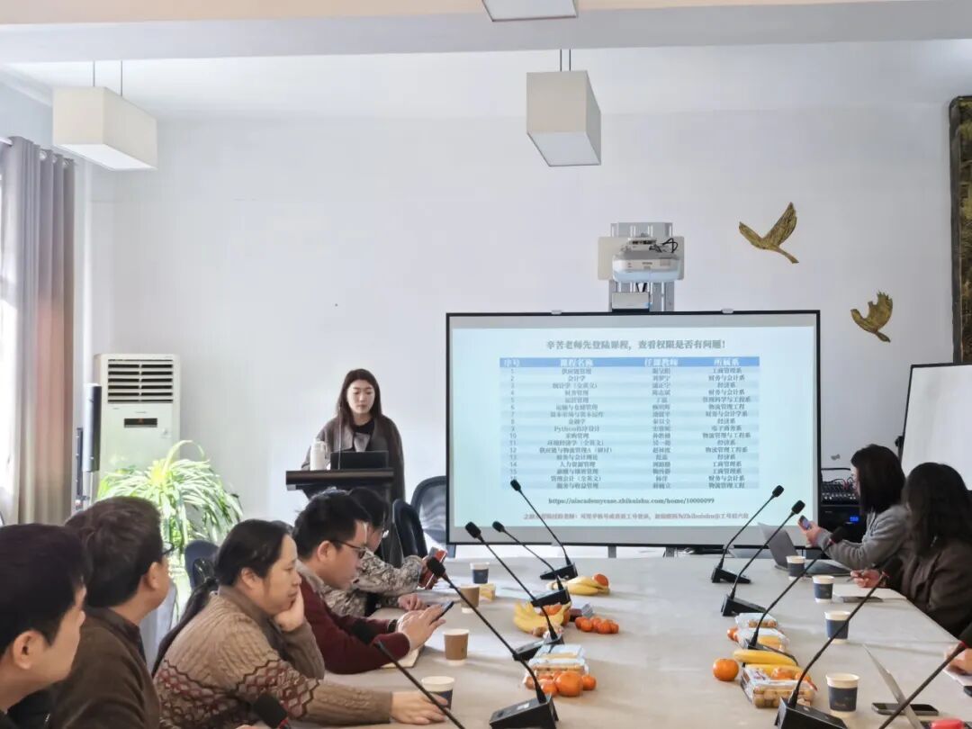 为积极响应国家教育数字化战略部署,深入探索人工智能与高等教育教学的深度融合,进一步提高人才培养质量,bat365在线中国官网登录入口于2026年1月13日在九龙湖校区经管楼B203会议室召开智慧课程建设专题会议。会议由学院副院长潘健平主持,学院教师代表及项目建设方相关人员参加了会议。