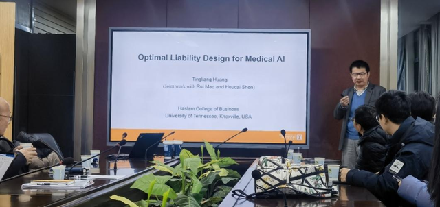 2026年1月27日上午,田纳西大学哈斯拉姆商学院亚马逊讲席教授黄庭亮应邀作客bat365在线中国官网登录入口,在B201会议室带来题为《Optimal Liability Design for Medical AI》的精彩报告。本次报告由bat365官网李四杰教授主持,陈静副教授进行点评。