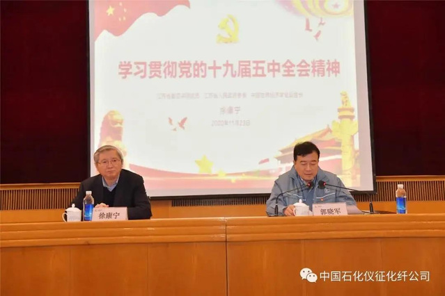 Professor Xu Kangning made the report about implementing the spirit of the Fifth Plenary Session of the 19th Central Committee of the Communist Party of China in Sinopec Yizheng Chemical Fibre Co., Ltd.
