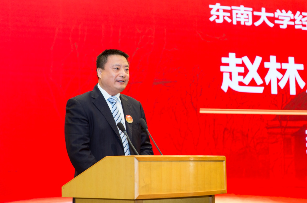 Dean Zhao Lindu recalled the journey of Southeast University's business department over the past 100 years and the development of the School of Economics and Management over the past 30 years, and elaborated on the spiritual connotation of the School's development based on the values of "help the people through the world, to manage and balance", the mission of "cultivate talents from all over the world, forge new knowledge of the past and the present", and the vision of "make the world a productive place".